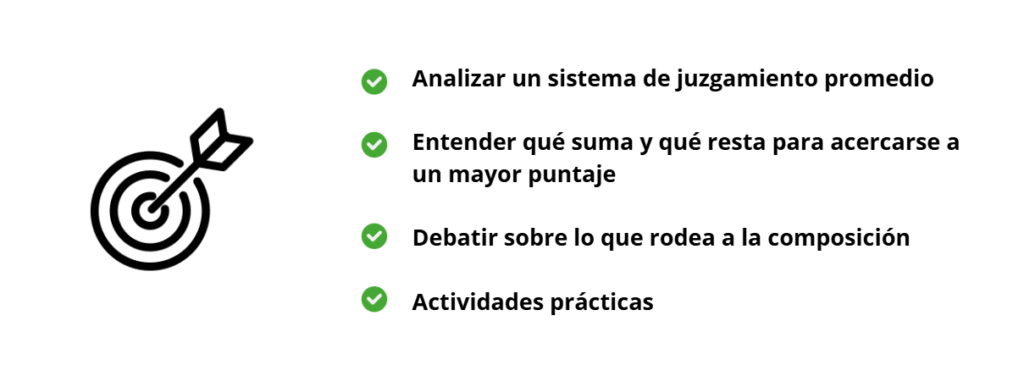 Vamos a hacer más cosas que esto pero básicamente analizar un sistema de juzgamiento promedio, entender qué suma y qué resta para acercarse al mayor puntaje, debatir sobre él (fíjate que dice acá debatir, me gustaría que en los comentarios podamos abrir hilos sobre lo que rodea la composición). Siempre recordemos ser respetuosos con los colegas que comentan por favor.